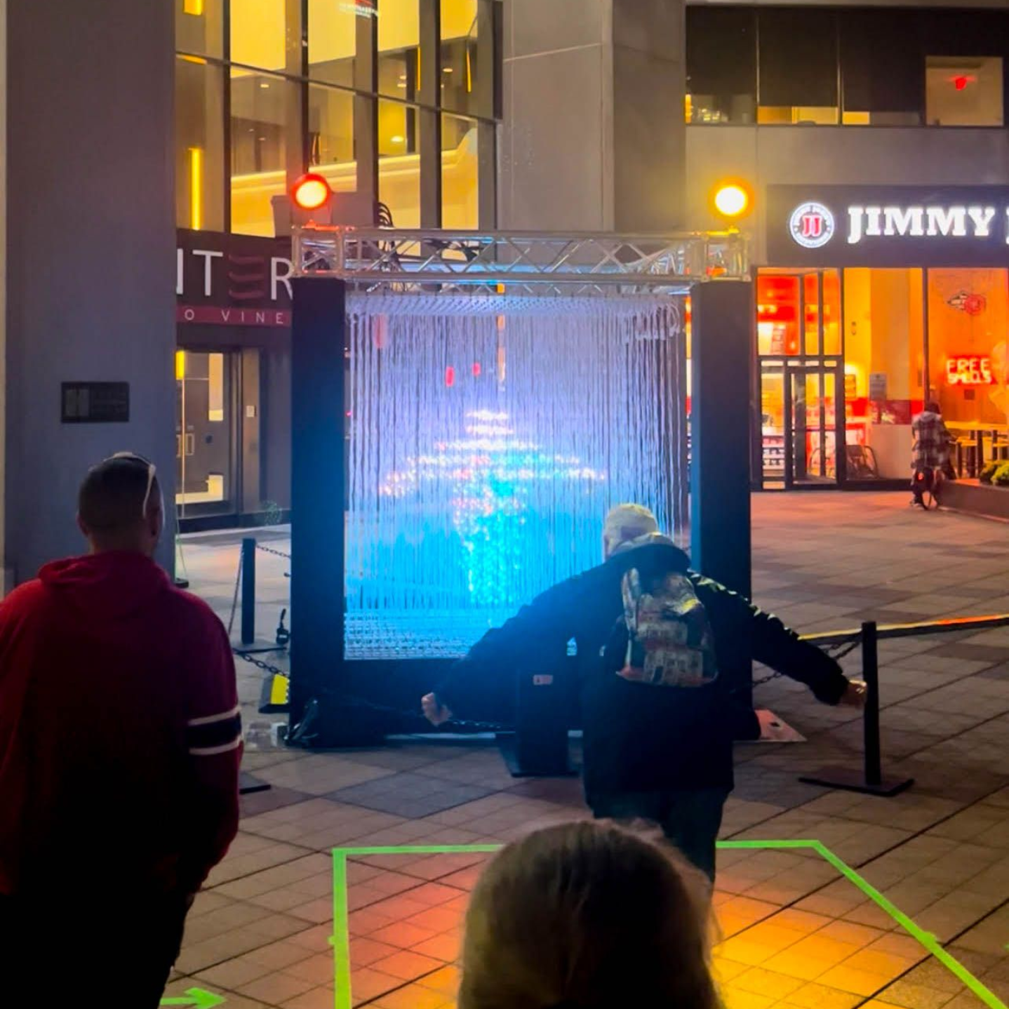 Step into the light and see yourself in a whole new way. Created by Digital Castaways, this interactive volumetric LED display mirrors your movements in a 3D array of shifting lights and color. Dance, wave, or simply move—and watch as Vivid Volume transforms every motion into a living sculpture of light.